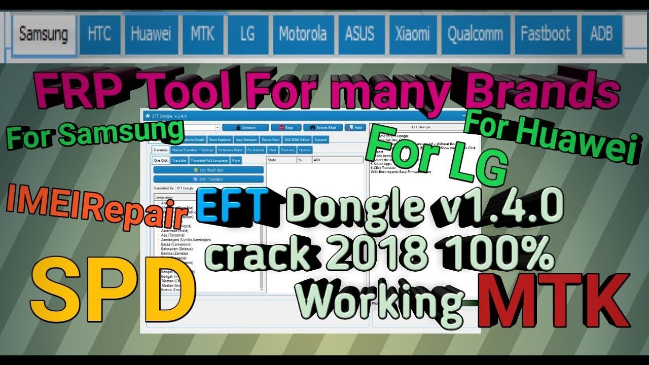 EFT Dongle v1.4.0 Crack Translate And Add All Android Device Language To Any Language you want, Features. All Samsung USA Korea China EFT… Kitkat Lollipop, Marshmallow, Nougat (Not Remove After Format)