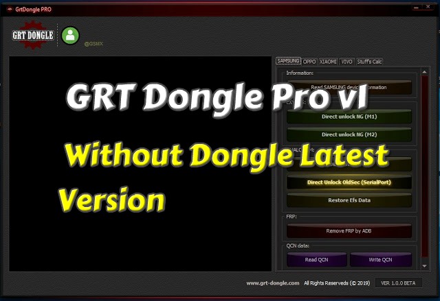 GRT Dongle Pro v1 Tool Without Dongle Latest Free Download,GRT Dongle Pro v1 is an application for windows Computer which allow to Remove Samsung Frp Lock,Remove Oppo Frp Lock,Remove Vivo Frp Lock,Read/write QCN Data,Direct Unlock MG,Bootloader Unlock ,Imei No. Repair etc