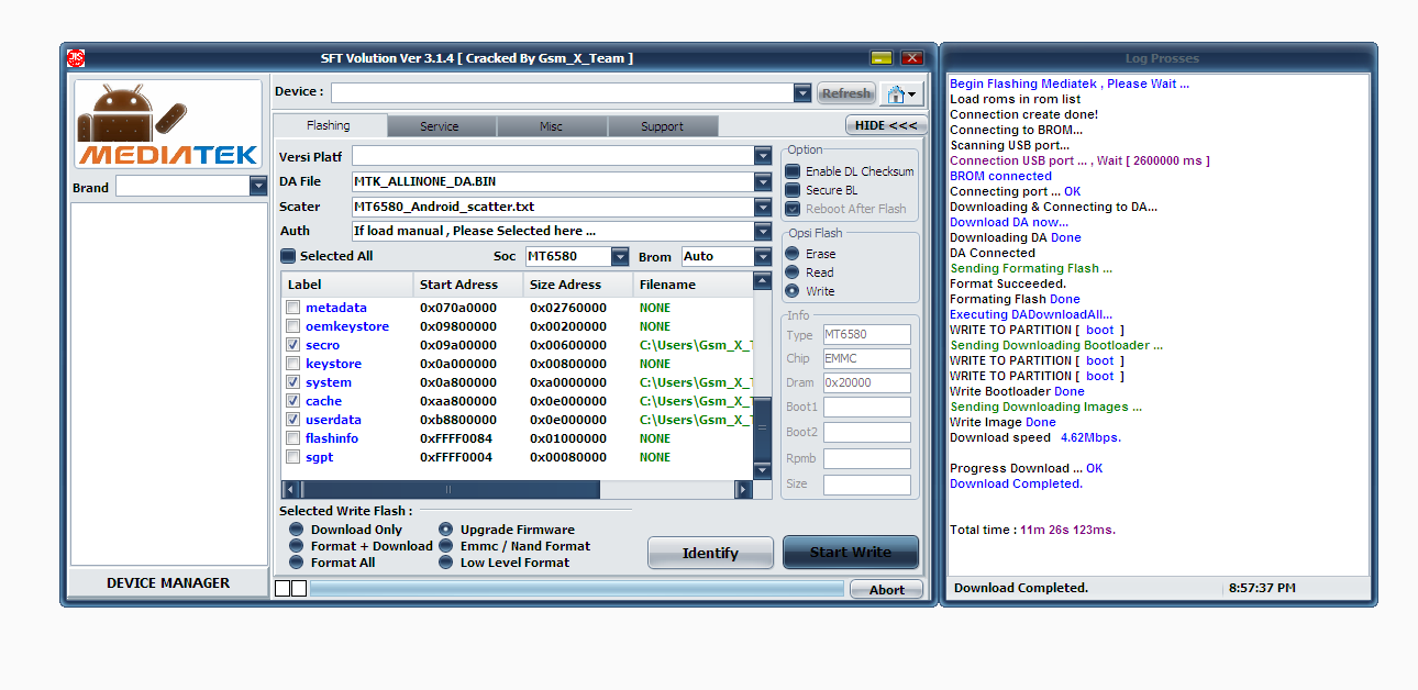 - All, Upgrade Firmware, Emmc / Nand Format , Low Level Format ] – Read Partition Device Include Scatter